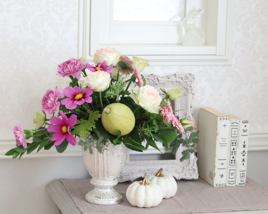 特に白いかぼちゃはシックでモダンな印象を与えるため、大人っぽいアレンジに仕上がります。