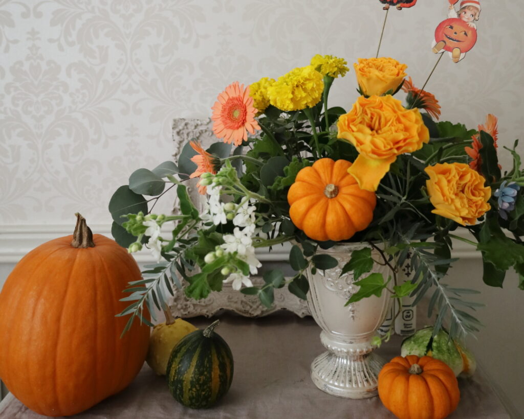 かぼちゃとハロウィンらしい花材の組み合わせ術